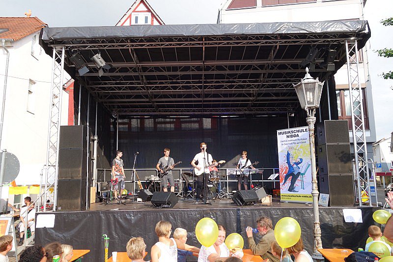 Musikschulbands auf derBühne am Marktplatz in Nidda